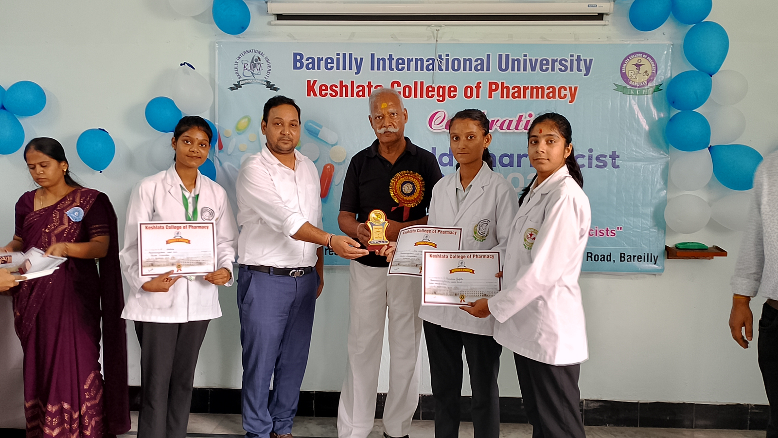 The event concluded with a vote of thanks and certificate distribution to the winners and participants. Overall, the celebration was informative, motivating, and successful in inspiring the students to contribute responsibly to society as future pharmacists.